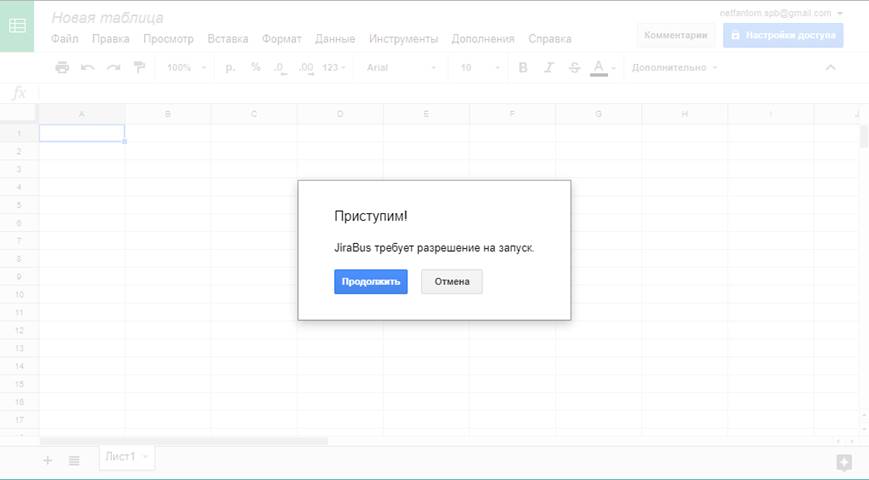 В новом окне будет открыт пустой документ Google Spreadsheet, в котором нужно