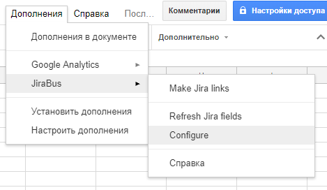 расширения JiraBus выберите «Настроить
